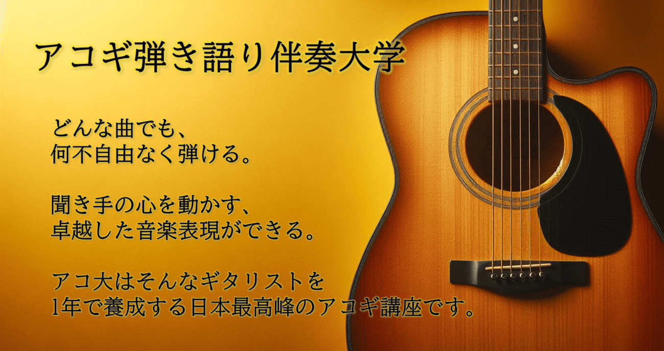 アコ大はギターの上達を10年早めるプログラムです。